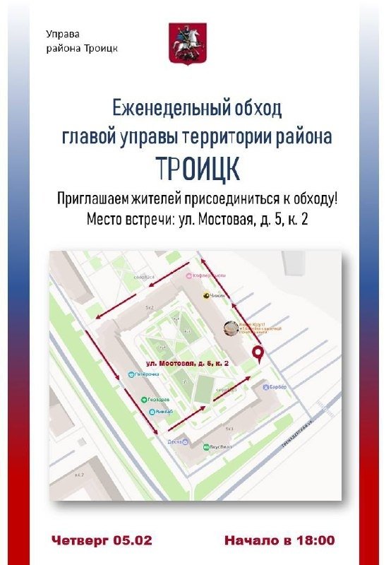 Модератор Опубликовано 19 часов назад Жалоба Share Опубликовано 19 часов назад Алексей Зотов проведет еженедельный обход территории района Глава управы вместе с жителями, представителями ГБУ «Жилищник района Троицк», специалистами эксплуатирующих организаций, муниципальными депутатами и общественными советниками проведет обход территории в четверг 5 февраля в ЖК «Десна». Сбор участников состоится в 18:00. Место встречи: улица Мостовая дом 5, корпус 2 между домами. ЖК Новые Ватутинки в MAX https://vk.cc/cSF1pE Цитата Ссылка на комментарий Поделиться на другие сайты More sharing options...